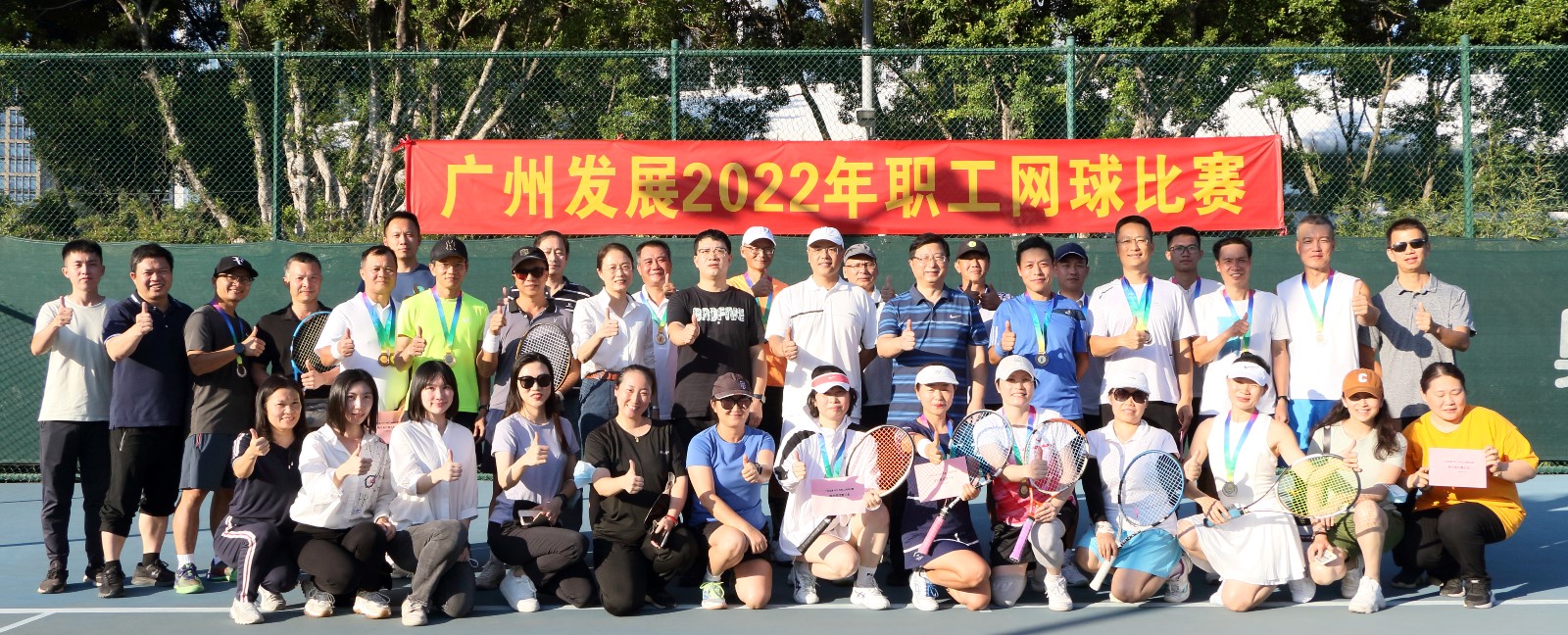 2022年10月22日,廣州發(fā)展工會在二沙島宏城網(wǎng)球場舉辦了2022年職工網(wǎng)球比賽。比賽設(shè)男子單打、男子雙打、混合雙打三項,共40名職工參賽,羅志剛主席全程參與活動并為獲獎職工頒獎。比賽緊張激烈,參賽職工歡聚一堂、激烈角逐,比技術(shù)、拼體力、比韌勁、講配合,奉獻了一場場精彩的比賽。